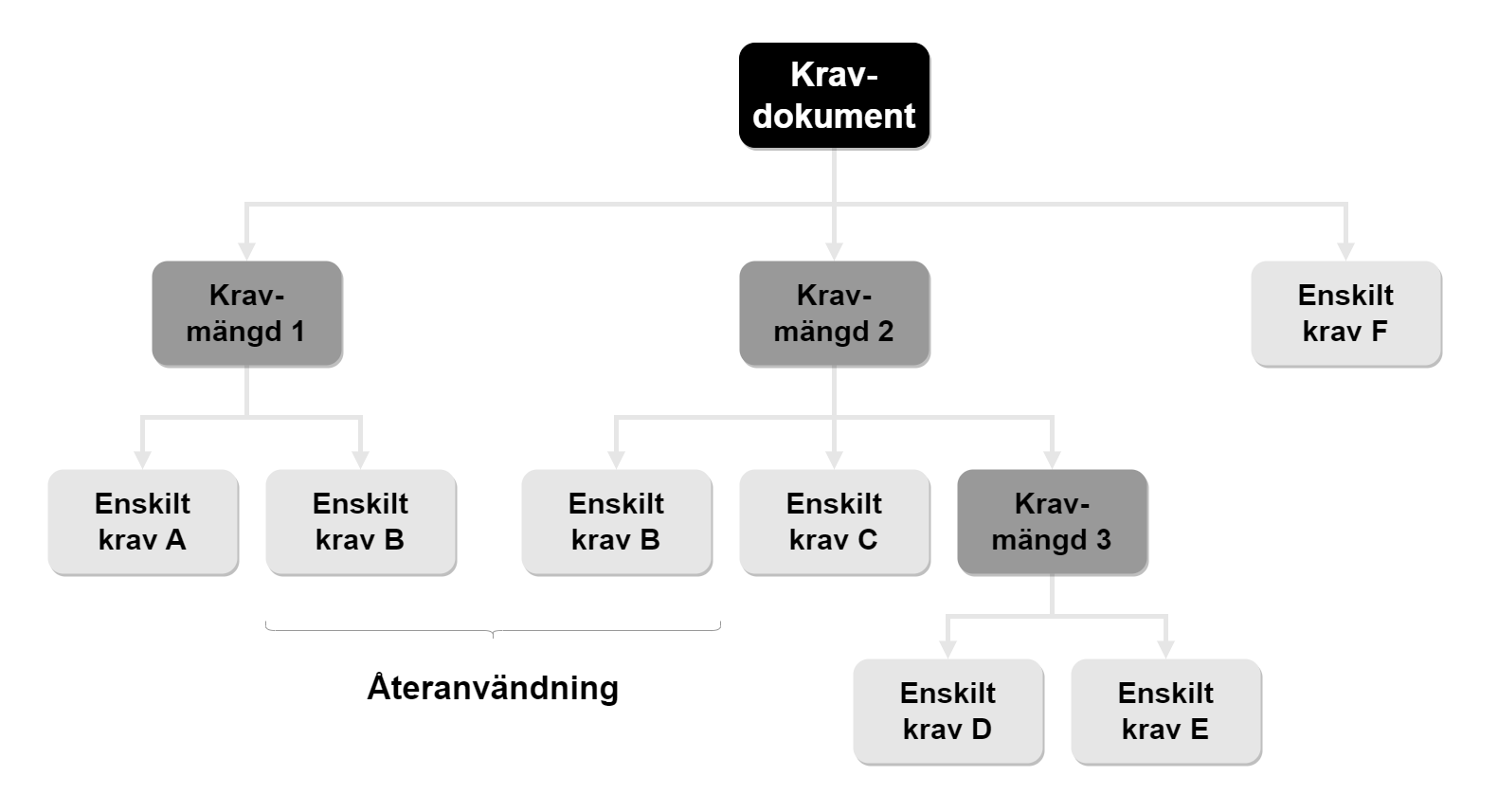 För att minska redundansen av kravinformation gör standarden det möjligt att till exempel återanvända samma krav på flera ställen i samma struktur eller mellan olika strukturer.