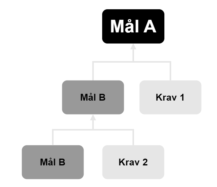 I definitionen av krav kan man ange vilka andra mål som kravet bidrar till. Samma sak kan anges i måldefinitioner för att visa hur ett mål bidrar till ett annat mål.