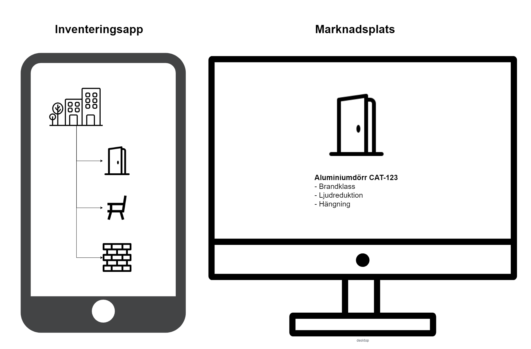 I en app för att stödja inventering av återanvändbara resurser kan informationen om resurserna struktureras och presenteras enligt standarden.