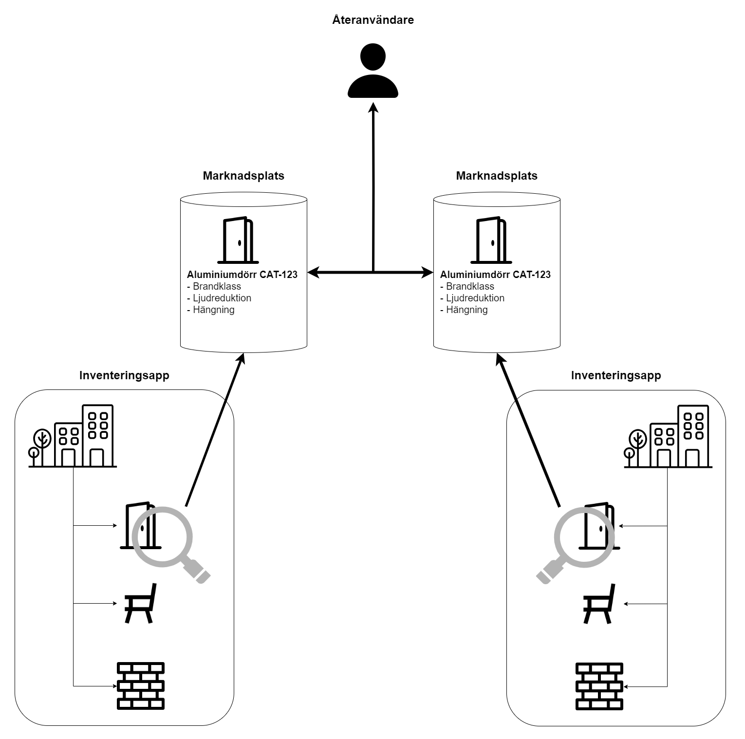 Främja interoperabilitet mellan aktörer som inventerar återanvändbara resurser (produkter och material) i byggnader.